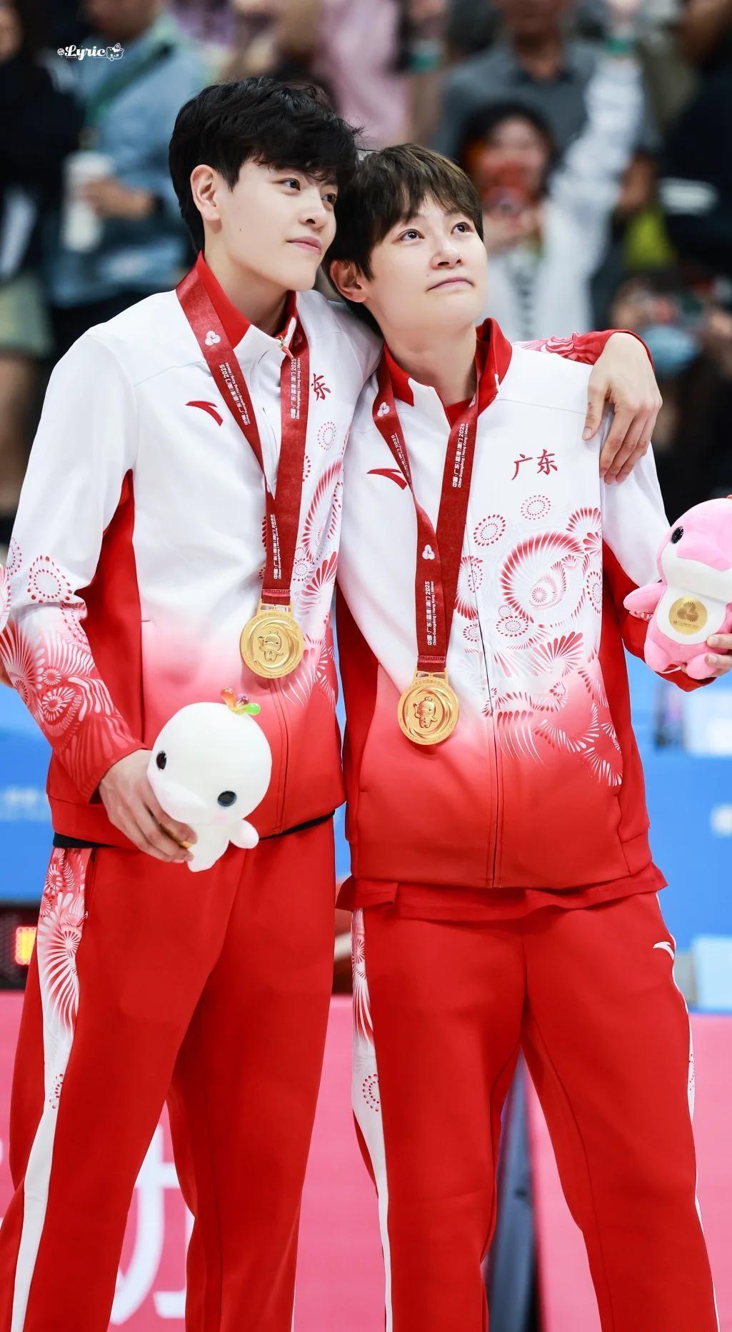 颁奖仪式上,她们不约而同地摘下金牌,一起挂在赶来现场的母亲脖子上,轻轻亲吻母亲的脸颊,那份对母亲的感激和对父亲的思念,尽在不言中。